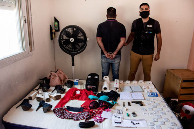 En el allanamiento se secuestró una pistola Cal. 6.35 mm, sin marca, ni numeración, 10 envoltorios de cocaína, un cuaderno con anotaciones de turnos y servicios realizados y dos celulares. Luego de tomarle declaración, dos mujeres fueron liberadas y solo quedó detenido el titular del alquiler del departamento.