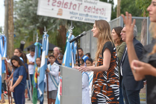 En el acto, la titular de la cartera educativa bonaerense destacó el trabajo realizado por el municipio y agregó que “es una doble celebración, ya que por un lado compartimos la inauguración de este hermoso edificio y por otro, el inicio del ciclo lectivo 2020 para todo el Nivel Secundario. Mientras compartimos con ustedes estamos festejando con más de 1.600.000 estudiantes que inician las clases en el día de hoy”.