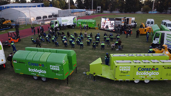 Con una inversión de $105 millones en maquinaria para La Matanza, donde ya se entregó una excavadora, dos autoelevadores, tres camiones con caja cerrada, un carretón, dos trituradoras de vidrio, dos guillotinas de neumáticos, tres balanzas de piso, cuatro puntos verdes móviles, tres enfardadoras con doble cajón vertical, dos chipeadoras y tres plantas de clasificación, se avanza en un plan que tiene como objetivo incorporar paulatinamente la diferenciación en origen, separación y reciclado.
