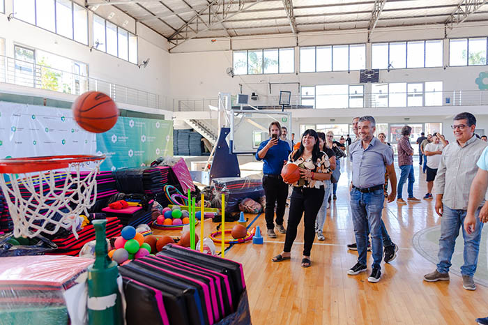 El intendente de Hurlingham, Juan Zabaleta, participó de la segunda entrega de elementos deportivos para todas las escuelas secundarias públicas del distrito, cuatro espacios que conforman el programa de Patios Abiertos y el Centro de Educación Física (CEF) N°175.