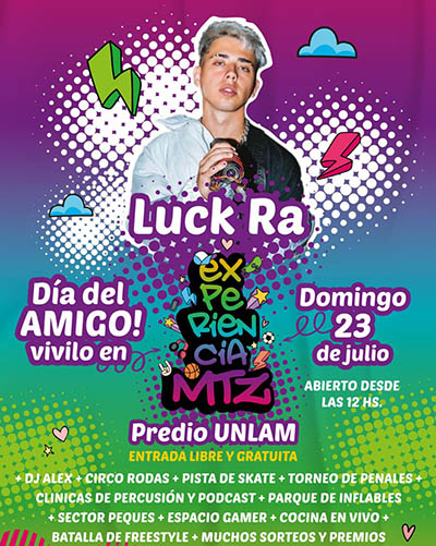 El domingo 23 de julio, “Luck Ra” se presentará como show central para cerrar el primer fin de semana de vacaciones de invierno, bailando con la mejor música; en la previa se hará presente, una vez más, DJ Alex.