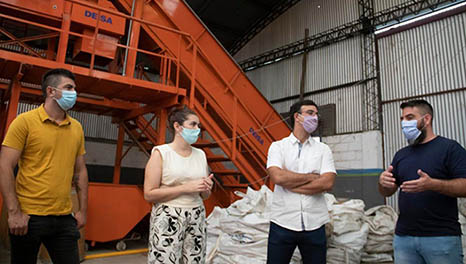 Fernández y Roig recorrieron la planta de clasificación de residuos sólidos urbanos localizada en el barrio La Porteña, la cual -entre otras tareas- recepcionará los residuos reciclables de los puntos verdes que funcionan en el Municipio. Además, junto a funcionarias y funcionarios locales mantuvieron un encuentro de trabajo y conversaron acerca de la experiencia de trabajo de cooperativas en la comuna.