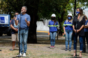 “Hoy comenzamos a tapar más de 5.000 pozos ciegos, eso significa que más de 25.000 habitantes, familias de Hurlingham, lindantes a la red secundaria cloacal Soto pueden empezar a conectarse. Después de tantos años y tanta demanda, esto es más que importante para la mejora de la calidad de vida. Al final del mandato del presidente Alberto Fernández, Hurlingham va a tener cloacas y agua potable para todas y para todos y eso es lo que vale la pena contar”, remarcó Zabaleta desde la plaza Mujeres Sudamericanas, donde tuvo lugar el acto.