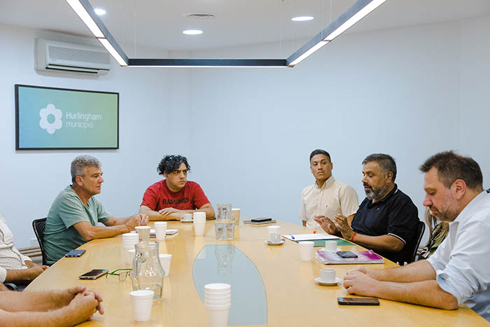 De la reunión participaron el secretario de Gobierno de Hurlingham, Pablo Del Valle; el secretario de Servicios Públicos, Luis Pereyra, y otros funcionarios del gabinete municipal.