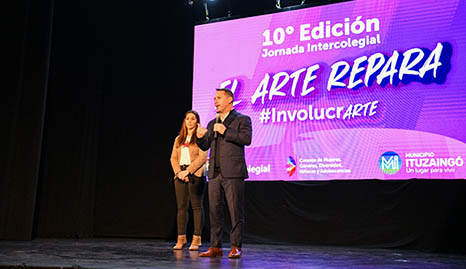 El lunes 3 de junio pasado, en el marco del décimo aniversario del primer grito colectivo de #NiUnaMenos, se llevó adelante en el Teatro Gran Ituzaingó la 10° edición de la jornada intercolegial “El Arte Repara”. La actividad contó con la presencia del intendente Pablo Descalzo y la participación de estudiantes de 17 escuelas del distrito, tanto públicas como privadas, además de jóvenes del Programa Envión.