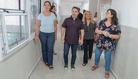 La última parada del recorrido fue la Escuela de Educación Secundaria N° 20, en Colectora Sur Acceso Oeste, entre Quintana y Ratti, donde se está ampliando el edificio con cuatro nuevas aulas, oficinas, cocina y un nuevo ingreso con hall para la secundaria. Estas ampliaciones permitirán elevar la capacidad de matrícula y proporcionar a los alumnos mejores condiciones para su aprendizaje.