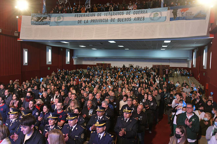 El homenaje contó con la presencia del Presidente del Concejo Deliberante, Pablo Piana, el Jefe de Gabinete, Pablo Descalzo, Veteranos de Guerra y familiares, autoridades de la comunidad educativa, trabajadores de la salud, de la fuerzas y autoridades del Ejecutivo municipal.