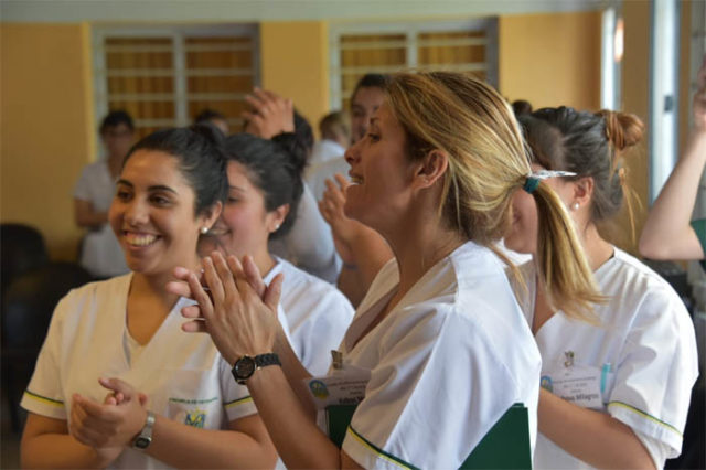 Estudiantes de tercer año de la Escuela de Enfermería de Ituzaingó estuvieron presentes en el evento y realizaron testeos de diabetes, control de presión y registros de altura y peso a las participantes.
