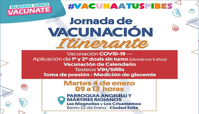 Este martes 4 de enero la Secretaría de Salud Pública en conjunto con la Secretaría de Desarrollo Social de La Matanza, realizará una nueva jornada de vacunación contra el COVID-19.