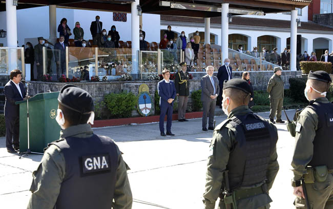 «Estoy contento porque puedo darle las gracias a todos estos gendarmes que tengo delante de mí, y le doy las gracias a todas las fuerzas de seguridad que todos los días salen a la calle, se arriesgan al contagio. Se exponen, como se exponen los hombres y mujeres de la Salud y los que abren comedores en estos barrios populosos para acercar su solidaridad. Como se exponen los compañeros de los movimientos sociales que también hacen el mismo esfuerzo. La Argentina toda está en deuda con ustedes. Y yo que soy el Presidente de los argentinos quiero darles las gracias por el esfuerzo, la templanza, el compromiso que han mostrado una vez más», destacó emocionado Alberto Fernández.