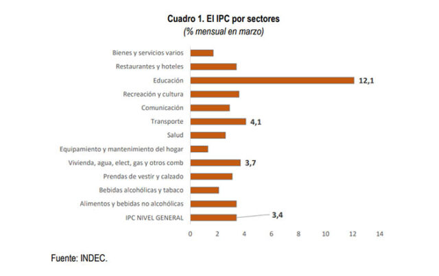 En ese sentido, los precios regulados mostraron un aumento del 5,1% en marzo, liderando las subas mensuales. Entre los principales incrementos se destacaron Educación, con un alza del 12,1%, Transporte (4,1%) y Vivienda (3,7%). En el caso de la educación privada, el aumento respondió a la actualización de aranceles y a cambios en las regulaciones que habilitaron ajustes por parte de las instituciones.