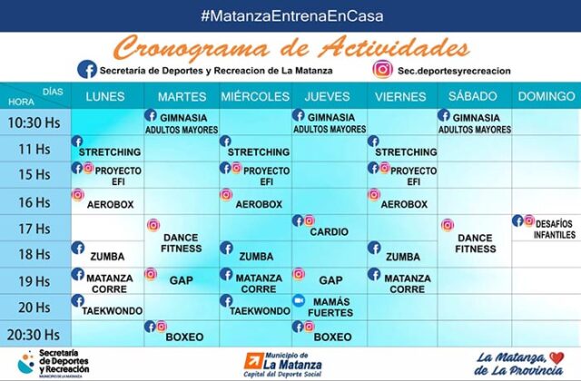Las actividades que son en vivo se realizan siempre en los mismos días y horarios, para que cada persona pueda organizar su rutina deportiva. Por otro lado, en el caso de otras actividades como handball, básquet, taekwondo y propuesta lúdicas, no se realizan en vivo, sino que se suben videos directamente en las redes.