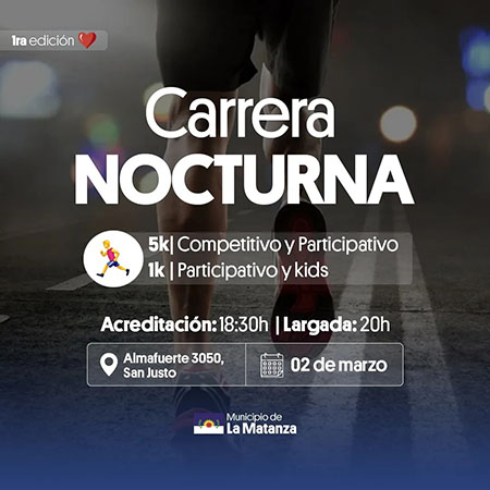 El Municipio de La Matanza realizará la “Primera carrera Nocturna”, el sábado 2 de marzo a las 18:30 horas en Almafuerte 3050, San Justo.