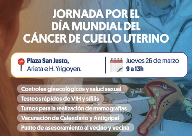En el marco del Día Mundial de la Prevención del Cáncer de Cuello Uterino, el Municipio de La Matanza llevará adelante una jornada de salud integral este jueves 26 de marzo, de 9 a 13, en la Plaza San Martín de San Justo.