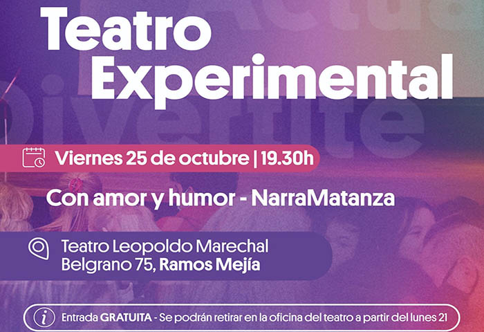 Además, el mismo viernes, el Teatro Municipal Leopoldo Marechal presentará el ciclo Teatro Experimental con la obra «Con amor y humor». A partir de las 19:30 horas, el colectivo femenino NarraMatanza interpretará narraciones de autoras como Isabel Allende y Ángeles Mastretta, con un elenco de talentosas actrices.