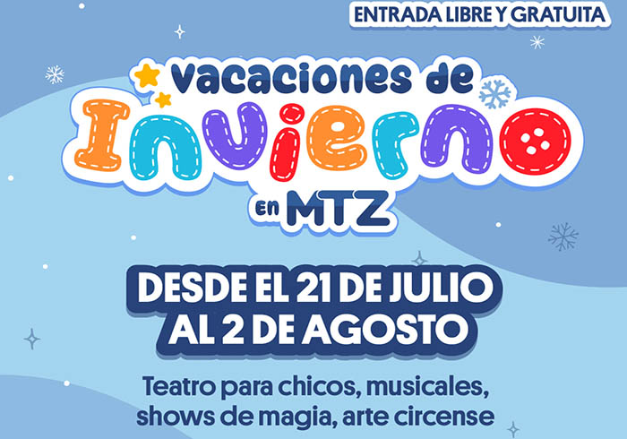 Oganizada por la Secretaría de Cultura y Educación, a cargo de Silvia Francese, la edición 2025 de las Vacaciones de Invierno en MTZ ofrecerá una programación diversa en todas las localidades del distrito, con obras teatrales infantiles, shows de magia, música, títeres, clown, globología y mucho más.
