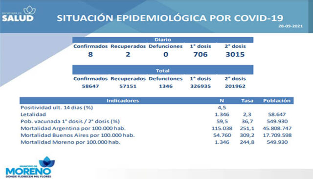 En el Municipio de Moreno ya se aplicaron 528.897 vacunas contra el COVID-19, de las cuales 326.935 corresponden a la primera dosis y 201.962 a la segunda.