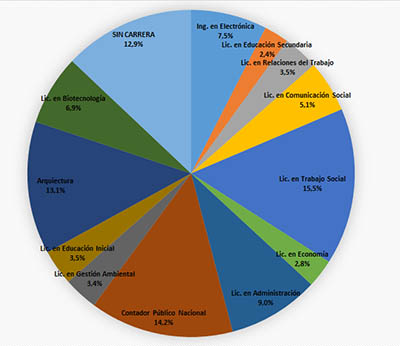 Para el undécimo ciclo lectivo de la UNM, las carreras más elegidas fueron la Licenciatura en Trabajo Social (15,5%), Contador Público Nacional (14,2%) y Arquitectura (13,1%).
