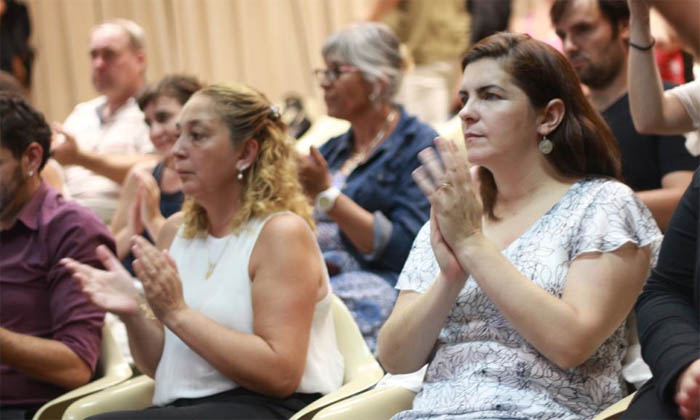 Mariel Fernández y la Secretaria de Desarrollo Comunitario Noelia Saavedra participaron del encuentro junto a otros intendentes e intendentas y funcionarios públicos.