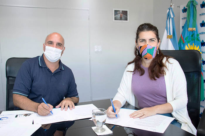 La intendenta de Moreno, Mariel Fernández y el secretario general de ANSES, Santiago Fraschina, firmaron un convenio de colaboración en el marco del programa Beneficios ANSES.