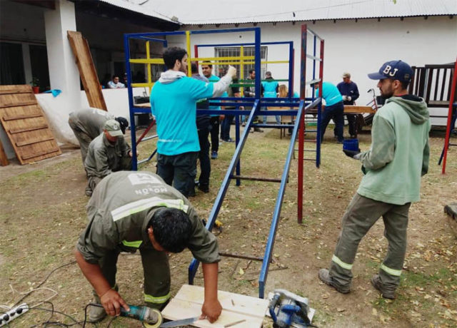 Mediante la Secretaría de Producción y Desarrollo Económico, el Municipio participó de una jornada organizada junto a la Fundación Pampa Energía haciendo trabajos de pintura, mantenimiento general y entrega de muebles en el Barrio Carlos Gardel.