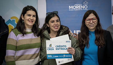 La intendenta de Moreno, Mariel Fernández, junto a la ministra de Hábitat y Desarrollo Urbano, Silvina Batakis, y el administrador del IDUAR, Leonardo Grosso, llevaron adelante una nueva entrega de créditos del programa provincial “Buenos Aires CREA”.