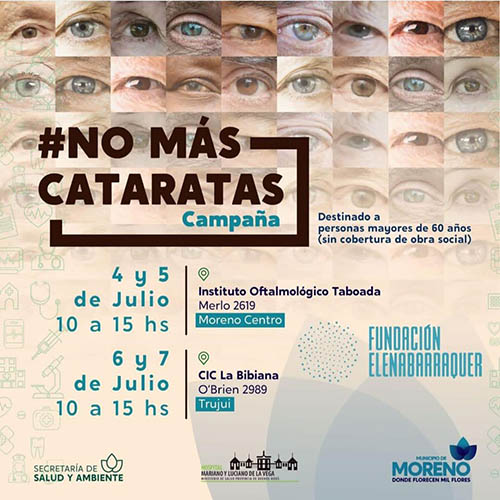 La campaña se realiza junto a la fundación Elena Barraquer, que propicia un equipo de médicas y médicos oftalmólogos especializados en el tema para poder brindar una oferta a los vecinos y vecinas de Moreno que no tengan cobertura social y que quieran acceder a una cirugía reparadora de cataratas.
