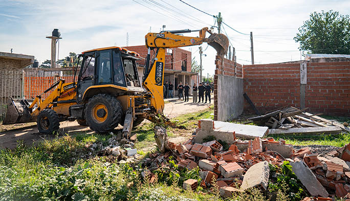 La intervención incluyó la demolición de la edificación utilizada para la comercialización de estupefacientes, con el objetivo de evitar que el lugar vuelva a funcionar como punto de venta y recuperar la tranquilidad en la zona.