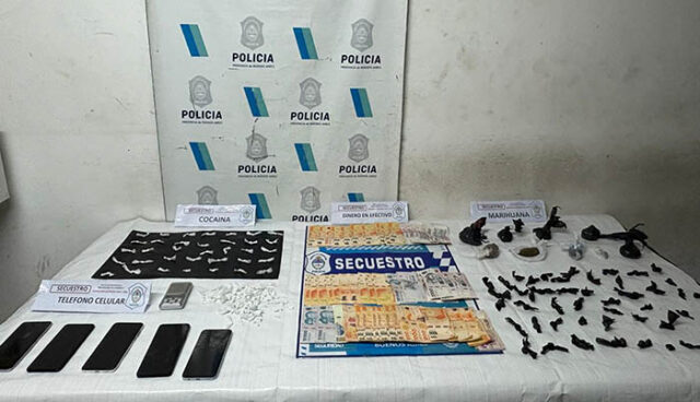 Durante los operativos, se secuestraron 138 envoltorios de cocaína, 55 de marihuana, $114.570 en efectivo, además de balanzas digitales y otros elementos relacionados con el fraccionamiento y venta.