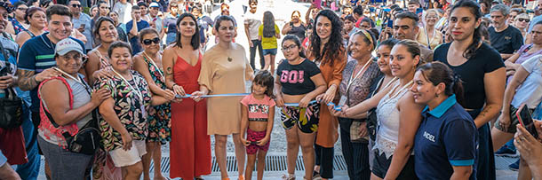 La intendenta de Moreno, Mariel Fernández, junto a Marisol Merquel, presidenta del Consejo Nacional de Políticas Sociales (CNPS) y Daiana Anadón, administradora del Instituto Municipal de Desarrollo Económico Local (IMDEL), inauguró el Mercado Popular MultiplicAR y el Predio Ferial de la localidad de Cuartel V.