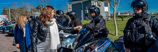 “Confeccionamos el Comando Unificado del Conurbano para coordinar las cuatro fuerzas federales en operativos conjuntos para optimizar recursos no solo de personal, sino también logísticos. Hoy vinimos a entregar nuestras políticas de prevención que llevamos adelante con el ministro de seguridad, Aníbal Fernández, cien cámaras de seguridad para el Centro de Monitoreo y un operativo de patrullaje tanto de motos como de montada y vehículos que van a tener una alta presencialidad en Moreno como se viene desarrollando semana a semana”, afirmó Mercedes La Gioiosa.