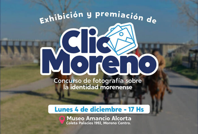 El lunes 4 de diciembre se realizará la premiación del concurso fotográfico sobre identidad morenense “Clic Moreno”. La actividad se desarrollará a las 17 Hs. en el Museo Amancio Alcorta ubicado en Coleta Palacios 1992, en el centro de Moreno.