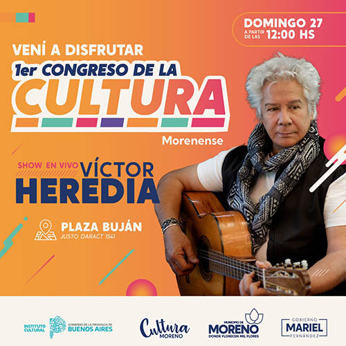 El Municipio de Moreno, a través de la Secretaría de Cultura, Educación y Deporte, realizará el “Primer Congreso de la Cultura Morenense”, que se desarrollará el domingo 27 de noviembre, a partir de las 12 horas, en la plaza Buján, ubicada en Justo Darac 1541, en la localidad de Paso del Rey.