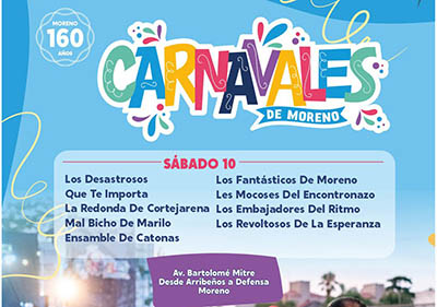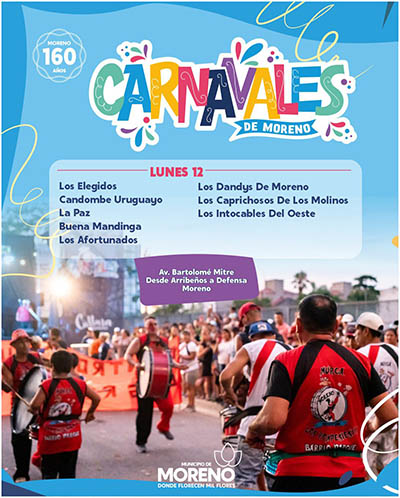 Este mes llegan los carnavales al distrito de Moreno con distintas actividades durante los mismos.