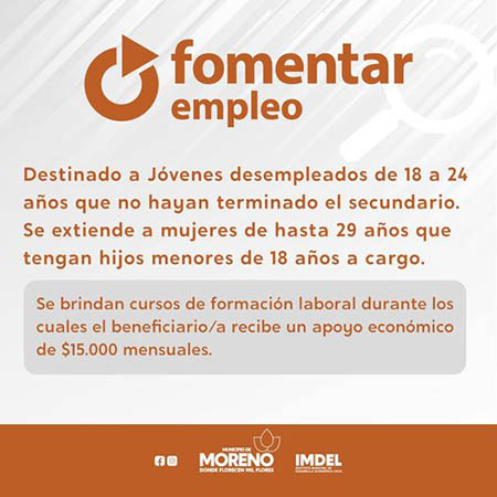Destinado a jóvenes morenenses de entre 18 y 24 años que no hayan terminado la escuela secundaria, y a mujeres de hasta 29 años que tengan a cargo hijas o hijos menores de 18 años.