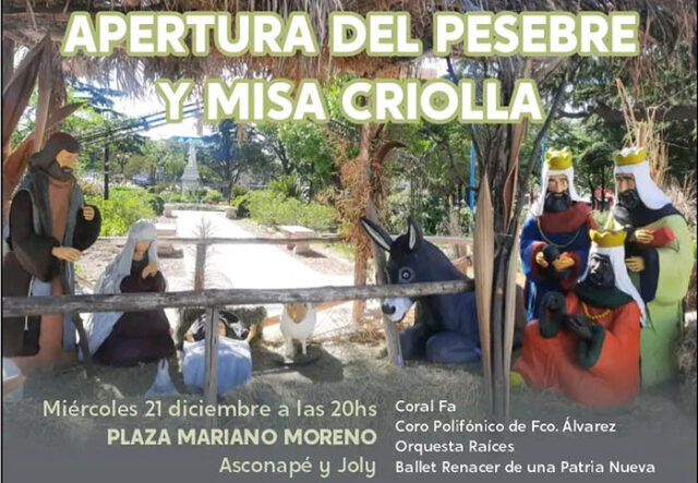 La Municipalidad de Moreno llevará a cabo la Misa Criolla y la posterior inauguración del Pesebre 2022.