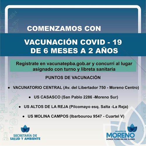 El municipio de Moreno, a través de la Secretaría de Salud y Ambiente, iniciará la campaña de vacunación contra el Covid 19 para niños y niñas de entre seis meses y dos años.
