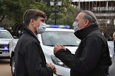 El intendente de Morón, Lucas Ghi, junto al ministro de Seguridad provincial, Sergio Berni, encabezaron la entrega de 30 nuevos patrulleros a la Policía Bonaerense que estarán destinados al fortalecimiento de las tareas preventivas en el distrito.