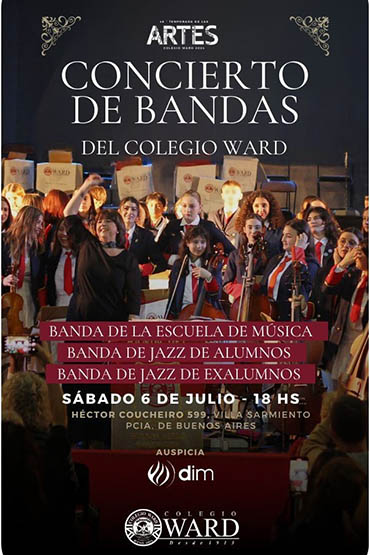 El sábado 6 de julio a las 18 horas, se presentará la Banda del Colegio Ward, la Banda de Jazz de Alumnos y la Banda de Jazz de Exalumnos.