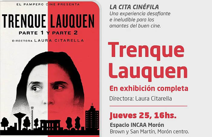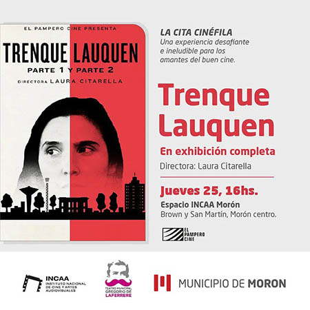 En el marco del nuevo aniversario, el próximo jueves 25 de mayo a las 16, se exhibirá el film “Trenque Lauquen” de Laura Citarella, como parte de las proyecciones del Espacio INCAA Morón que funciona en el Teatro, ubicado en San Martín y Brown, Morón.