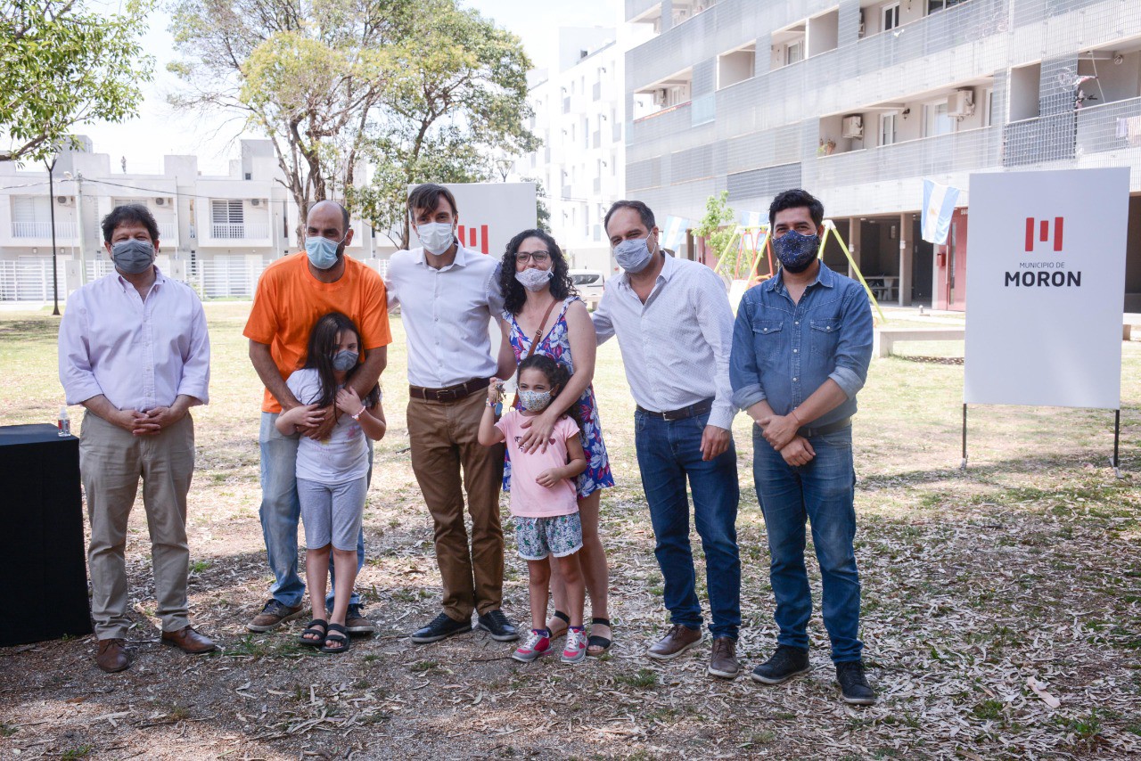 El intendente Morón, de Lucas Ghi, y el secretario de Hábitat de la Nación, Santiago Maggiotti, realizaron ayer una nueva entrega de viviendas del Plan Procrear. Esta vez, fueron dos en el complejo urbanísticos de Haedo y una en Castelar sur. También fueron conferidos 7 créditos para la construcción de viviendas “Casa Propia” a familias del distrito.