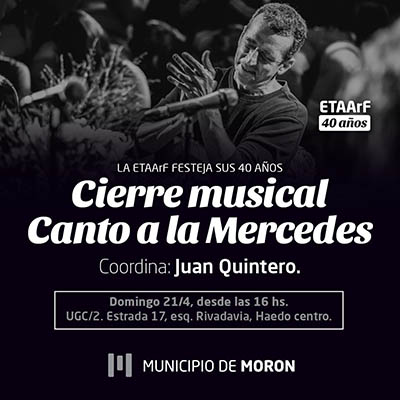 Habrá muestras, stands y feria de emprendedores. Para cerrar la jornada, habrá un recital de Canto a la Mercedes a cargo de Juan Quintero.