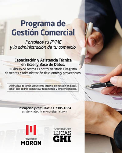 El Programa de Gestión Comercial se enmarca en las políticas del Estado local orientadas a fortalecer el entramado productivo del distrito, promoviendo herramientas prácticas que acompañen el desarrollo sostenible de las PyMEs de Morón.