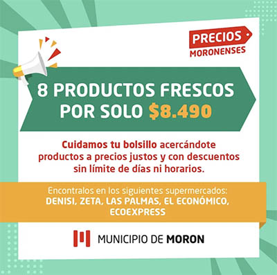 Los “Precios Moronenses” tienen vigencia hasta el 24 de mayo y pueden conseguirse en los siguientes supermercados: