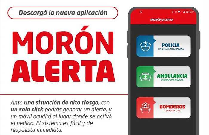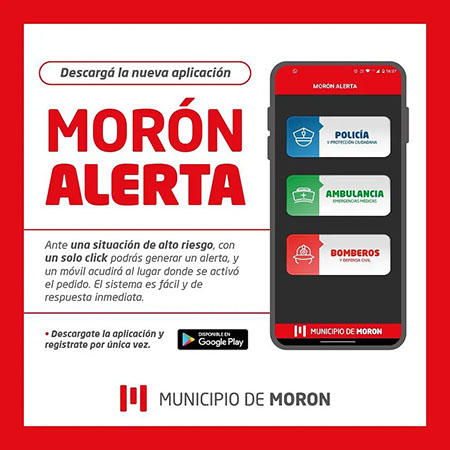 El Municipio de Morón continúa implementando herramientas para contribuir a la seguridad de los vecinos y vecinas. En ese marco se lanzó “Morón Alerta”, una aplicación para celular que conecta con el Centro de Operaciones y Monitoreo municipal, y permite solicitar un móvil policial, ambulancia o bomberos ante una situación de emergencia.