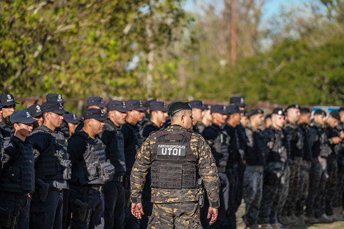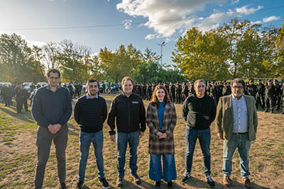 «La llegada de 300 policías nos da tranquilidad y acompaña el trabajo comprometido que venimos haciendo con la jefatura departamental y el Ministerio de Seguridad, y nos imaginamos también la tranquilidad que le da a los vecinos poder ver patrullaje no solo en vehículos y en moto si no también ver policía caminando en los barrios», afirmó la intendenta durante la presentación.
