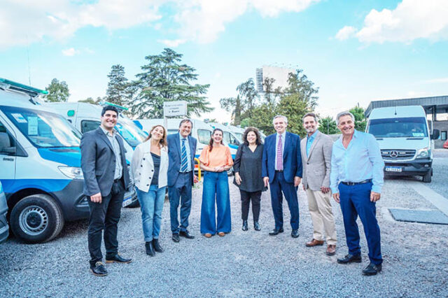 La intendenta municipal, Mariel Fernández, junto al presidente de la Nación, Alberto Fernández y la Ministra de Salud, Carla Vizzotti, presentaron 344 nuevas ambulancias el viernes 21 de octubre en el Parque Industrial 2, ubicado sobre la Ruta Provincial N°24, Moreno.