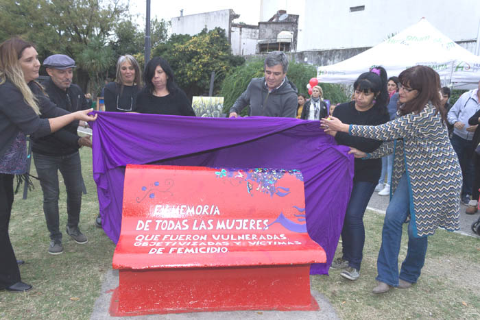 “El banco es símbolo de aquellas mujeres que fueron víctimas de femicidio y es una representación de quienes luchan todos los días para que esto no pase más, para que no las maten, para que ellas sean sinónimo de vida en ese movimiento maravilloso de mujeres que intenta transformar nuestra sociedad y que trabaja por más derechos y más oportunidades”, expresó el intendente.
