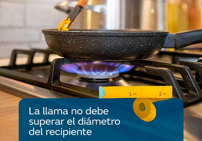 Ajustar la llama de las hornallas al diámetro del fondo de los recipientes y manténgalos tapados. La llama que sobresale no aporta mayor calor al recipiente y si está destapado se pierde temperatura.