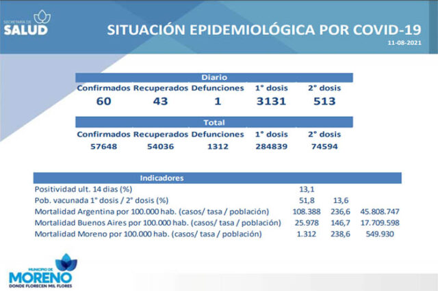 L a Municipalidad de Moreno ya aplicó 361.151 vacunas contra el COVID-19, de las cuales 284.839 corresponden a la primera dosis y 74594 a la segunda.